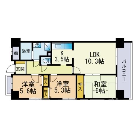 TVドアホン、TVモニタ付インターフォン、都市ガス、システムキッチン、給湯、コンロガスコンロ付、コンロ口数三口、シャワー、シャワートイレ、シャンプードレッサー、シューズボックス、収納、バストイレ別、洗濯機置き場室内有り、洗面所、独立洗面台、トイレ専用(水洗)、トイレ数一基、バルコニー、バス専用、フローリング、ベランダ、押入、畳、脱衣所、暖房便座、洗面台、角部屋、地上デジタル放送