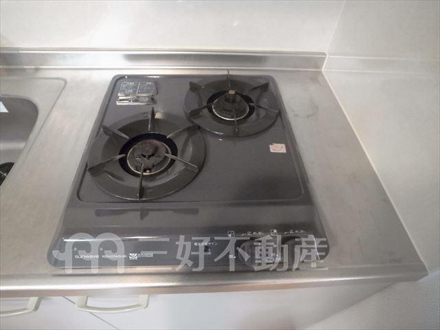プロパンガス、システムキッチン、給湯、クローゼット、コンロガスコンロ付、コンロ口数二口、シャワー、シューズボックス、収納、バストイレ別、洗濯機置き場室外有り、洗面所、独立洗面台、トイレ専用(水洗)、バルコニー、バス専用、フローリング、エアコン、ロフト、角部屋