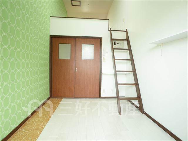 プロパンガス、給湯、コンロガスコンロ付、コンロ口数一口、シャワー、照明、バストイレ別、洗濯機置き場室内有り、トイレ専用(水洗)、バルコニー、バス専用、フローリング、エアコン、ロフト、角部屋