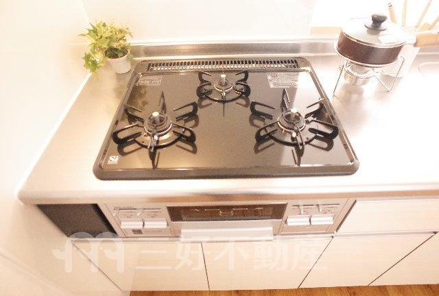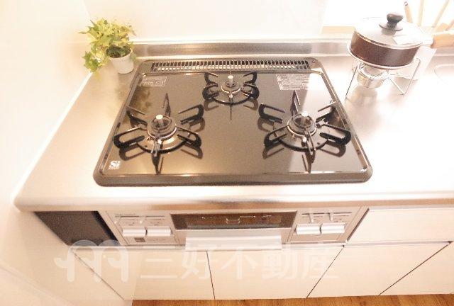 TVモニタ付インターフォン、ウォークインクローゼット、追い焚き、プロパンガス、システムキッチン、給湯、コンロガスコンロ付、シャワートイレ、シャンプードレッサー、収納、バストイレ別、独立洗面台、トイレ専用(水洗)、バス専用、フローリング、カウンターキッチン