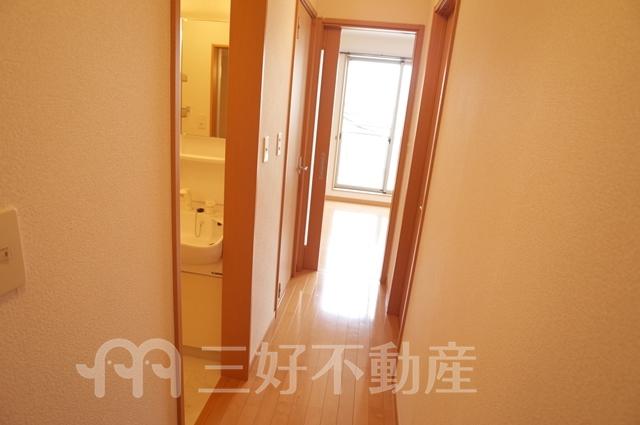BS放送、TVドアホン、TVモニタ付インターフォン、追い焚き、プロパンガス、給湯、クローゼット、ガスコンロ設置可、シャワー、シャンプードレッサー、シューズボックス、収納、バストイレ別、洗濯機置き場室内有り、洗面所、独立洗面台、トイレ専用(水洗)、バルコニー、バス専用、フローリング、エアコン、脱衣所、角部屋