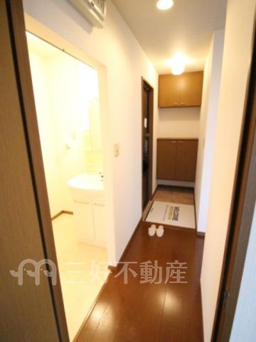 インターフォン、カードキー、プロパンガス、給湯、クローゼット、ガスコンロ設置可、シャワー、シャワートイレ、シャンプードレッサー、収納、バストイレ別、洗濯機置き場室内有り、洗面所、独立洗面台、トイレ専用(水洗)、トイレ数一基、バルコニー、バス専用、フローリング、大型シューズボックス、脱衣所、暖房便座、洗面台、角部屋