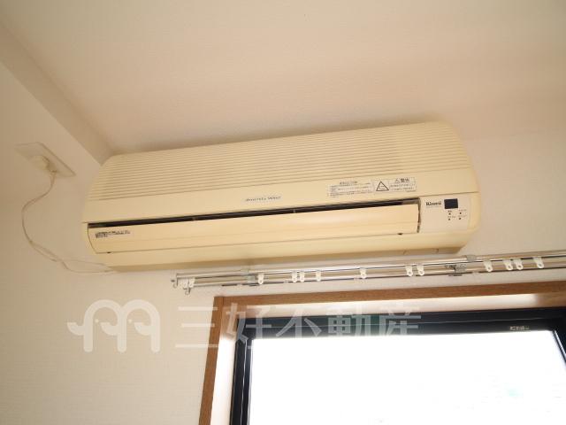 BS放送、インターフォン、プロパンガス、給湯、クローゼット、ガスコンロ設置可、シャワー、シャンプードレッサー、シューズボックス、収納、バストイレ別、洗濯機置き場室内有り、洗面所、独立洗面台、トイレ専用(水洗)、トイレ数一基、バルコニー、バス専用、フローリング、エアコン、洗面台