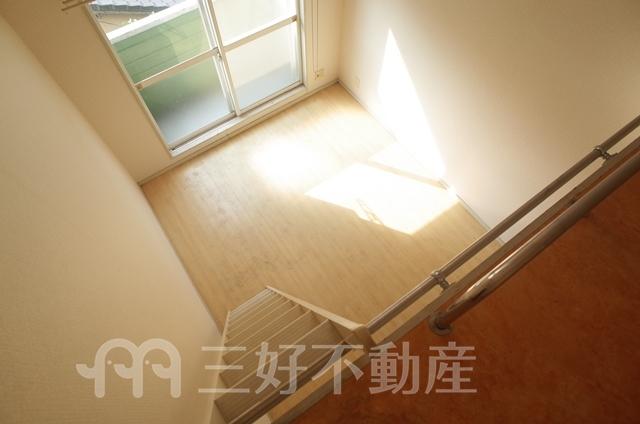 BS放送、プロパンガス、クローゼット、コンロガスコンロ付、コンロ口数一口、シャワー、シャワートイレ、シューズボックス、収納、バストイレ別、洗濯機置き場室外有り、出窓、トイレ専用(水洗)、バルコニー、バス専用、フローリング、エアコン、ロフト、吹抜、内階段