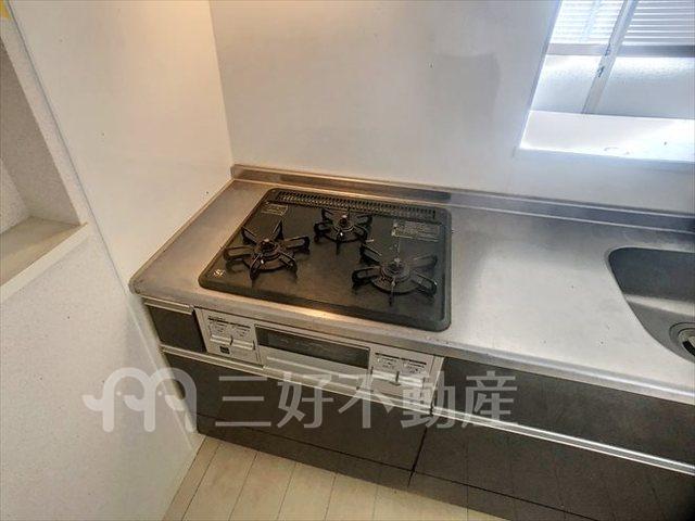 TVモニタ付インターフォン、追い焚き、プロパンガス、給湯、クローゼット、ガスコンロ付、シャワー、シャワートイレ、シャンプードレッサー、収納、バストイレ別、洗濯機置き場室内有り、洗面所、独立洗面台、トイレ専用(水洗)、バルコニー、バス専用、フローリング、浴室乾燥、エアコン、脱衣所、角部屋、カウンターキッチン