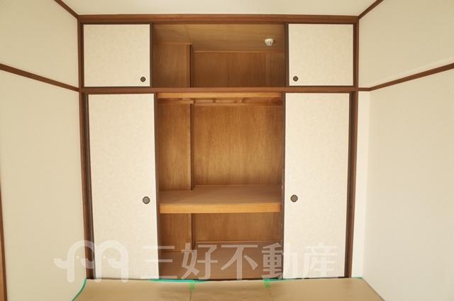 BS放送、TVモニタ付インターフォン、都市ガス、給湯、クローゼット、ガスコンロ設置可、シャワー、シューズボックス、収納、バストイレ別、洗濯機置き場室内有り、洗面所、独立洗面台、トイレ専用(水洗)、トイレ数一基、バルコニー、バス専用、フローリング、押入、畳、脱衣所、火災警報器(報知機)
