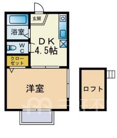 プロパンガス、給湯、クローゼット、シャワー、収納、バストイレ別、洗濯機置き場室内有り、トイレ専用(水洗)、トイレ数一基、バルコニー、バス専用、フローリング、エアコン、ロフト、角部屋