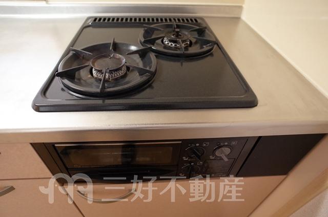 ウォークインクローゼット、プロパンガス、給湯、クローゼット、コンロガスコンロ付、コンロ口数二口、シャワー、シューズボックス、収納、バストイレ別、洗濯機置き場室内有り、洗面所、独立洗面台、ディンブルキー、トイレ専用(水洗)、バルコニー、バス専用、フローリング、エアコン、脱衣所、カウンターキッチン