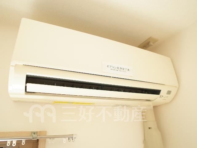 プロパンガス、給湯、クローゼット、ガスコンロ設置可、シャワー、シャンプードレッサー、シューズボックス、収納、バストイレ別、洗濯機置き場室内有り、洗面所、独立洗面台、トイレ専用(水洗)、トイレ数一基、バルコニー、バス専用、フローリング、エアコン、脱衣所、南面、洗面台、24時間換気システム