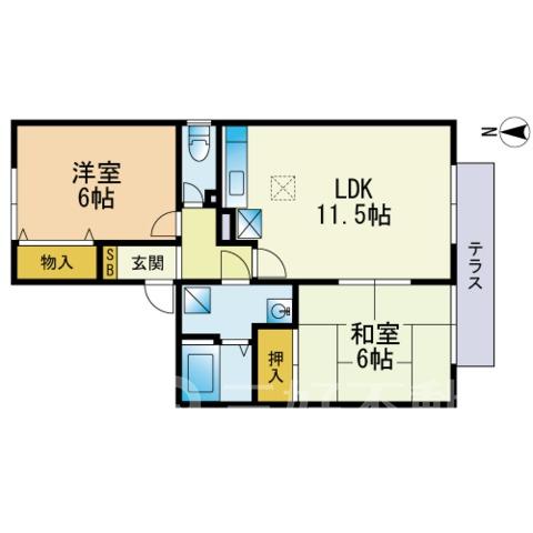 BS放送、プロパンガス、給湯、クローゼット、ガスコンロ設置可、シャワー、シューズボックス、収納、バストイレ別、洗濯機置き場室内有り、洗面所、独立洗面台、テラス、トイレ専用(水洗)、バス専用、フローリング、エアコン、脱衣所、火災警報器(報知機)