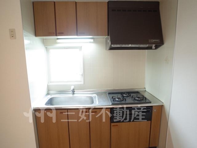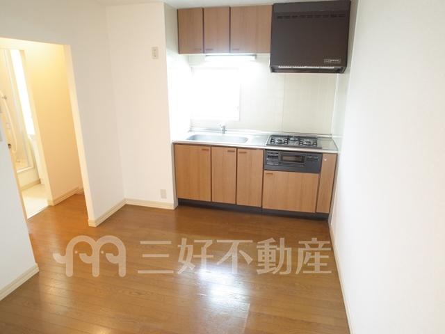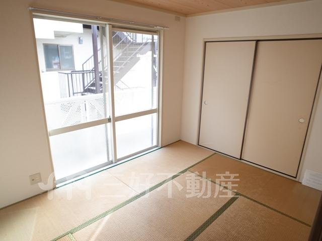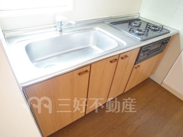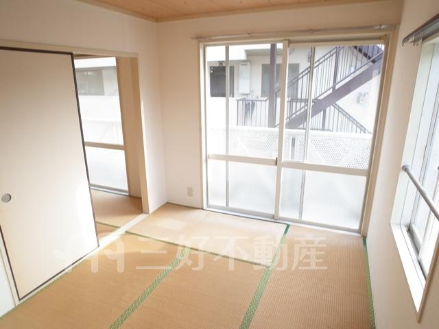 インターフォン、プロパンガス、システムキッチン、給湯、コンロガスコンロ付、コンロ口数三口、シャワー、シャンプードレッサー、シューズボックス、収納、バストイレ別、洗濯機置き場室内有り、洗面所、独立洗面台、トイレ専用(水洗)、バルコニー、バス専用、フローリング、エアコン、押入、採光面数2面採光、畳、南面2部屋、角部屋