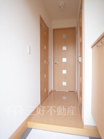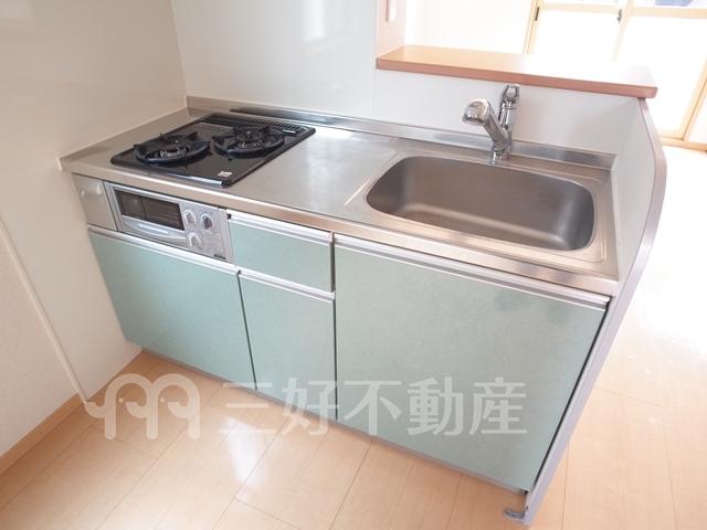 TVモニタ付インターフォン、追い焚き、カードキー、プロパンガス、システムキッチン、クローゼット、コンロガスコンロ付、コンロ口数二口、シャンプードレッサー、シューズボックス、収納、バストイレ別、洗濯機置き場室内有り、有(その他)、フローリング、エアコン、脱衣所、暖房便座