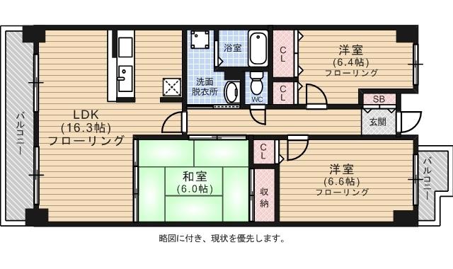 クローゼット、シャワー、シューズボックス、収納、バストイレ別、洗濯機置き場室内有り、洗面所、独立洗面台、トイレ専用(水洗)、バルコニー、バス専用、フローリング、押入、畳、脱衣所、角部屋
