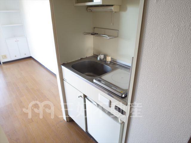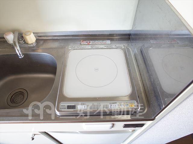 インターフォン、プロパンガス、給湯、コンロIH、コンロ口数一口、シャワー、シューズボックス、収納、バストイレ別、洗濯機置き場室内有り、有(その他)、ダブルバルコニー、トイレ専用(水洗)、バルコニー、バス専用、フローリング、エアコン、角部屋