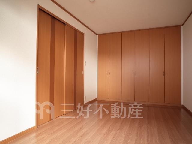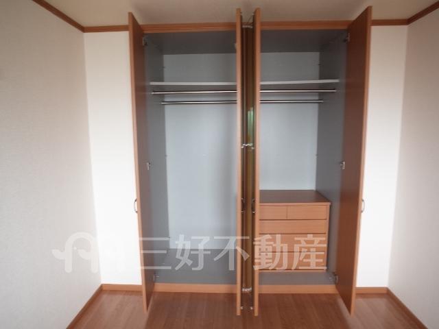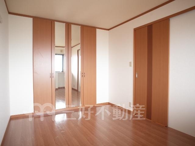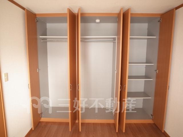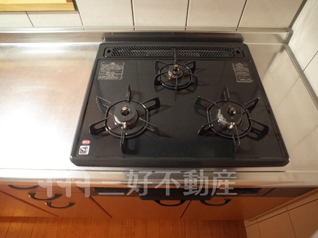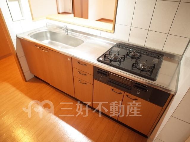 TVモニタ付インターフォン、追い焚き、プロパンガス、システムキッチン、給湯、クローゼット、コンロガスコンロ付、コンロ口数三口、シャワー、シャンプードレッサー、シューズボックス、収納、バストイレ別、洗濯機置き場室内有り、洗面所、独立洗面台、トイレ専用(水洗)、トイレ数一基、バルコニー、バス専用、フローリング、エアコン、脱衣所、カウンターキッチン