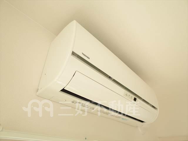 BS放送、TVドアホン、TVモニタ付インターフォン、システムキッチン、給湯、クローゼット、コンロガスコンロ付、コンロ口数二口、シャワー、シャワートイレ、シューズボックス、収納、バストイレ別、洗濯機置き場室内有り、洗面所、独立洗面台、ディンブルキー、トイレ専用(水洗)、バルコニー、バス専用、フローリング、浴室乾燥、エアコン、ダブルロック、脱衣所、暖房便座、24時間換気システム、CS110°