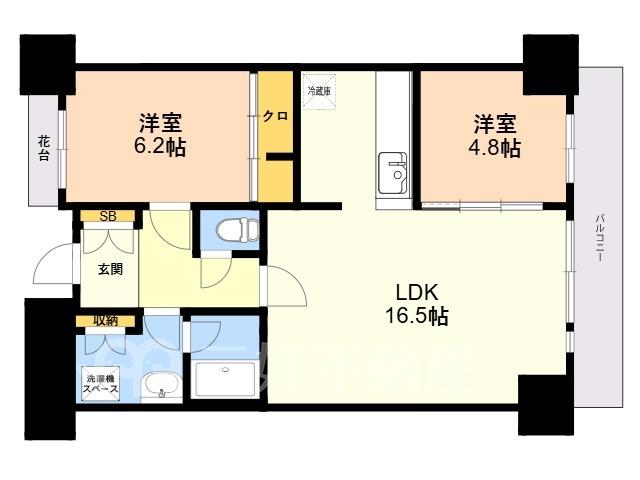 JR箱崎駅 徒歩8分! 全戸角部屋の2LDK!