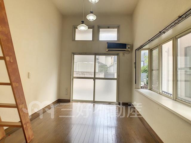 都市ガス、給湯、コンロ電気、シャワー、シューズボックス、バストイレ別、洗濯機置き場室内有り、有(その他)、出窓、トイレ専用(水洗)、バルコニー、バス専用、フローリング、エアコン、ロフト、防犯シャッター