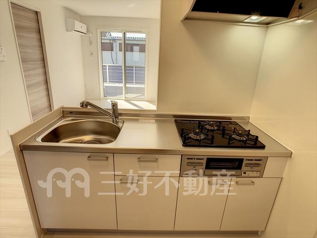 TVドアホン、TVモニタ付インターフォン、ウォークインクローゼット、追い焚き、プロパンガス、給湯、クローゼット、コンロガスコンロ付、コンロ口数三口、シャワー、シャワートイレ、シューズボックス、収納、バストイレ別、洗濯機置き場室内有り、洗面所、独立洗面台、トイレ専用(水洗)、バルコニー、バス専用、フローリング、床下収納、浴室乾燥、エアコン、オートバス、脱衣所、暖房便座、カウンターキッチン、火災警報器(報知機)、警備会社
