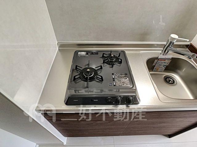 BS放送、TVドアホン、TVモニタ付インターフォン、追い焚き、プロパンガス、システムキッチン、給湯、クローゼット、コンロガスコンロ付、コンロ口数二口、シャワー、シャワートイレ、シャンプードレッサー、シューズボックス、収納、バストイレ別、洗濯機置き場室内有り、洗面所、独立洗面台、ディンブルキー、トイレ専用(水洗)、バルコニー、バス専用、フローリング、エアコン、脱衣所、24時間換気システム、角部屋、24時間セキュリティ