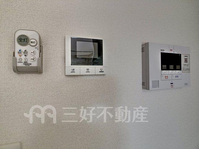 TVドアホン、TVモニタ付インターフォン、追い焚き、カードキー、都市ガス、給湯、クローゼット、コンロガスコンロ付、コンロ口数三口、シャワー、シャワートイレ、シャンプードレッサー、シューズボックス、収納、バストイレ別、洗濯機置き場室内有り、洗面所、独立洗面台、トイレ専用(水洗)、バルコニー、バス専用、フローリング、浴室乾燥、エアコン、オートバス、脱衣所、暖房便座、警備会社
