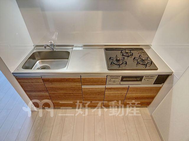 BS放送、TVドアホン、TVモニタ付インターフォン、追い焚き、プロパンガス、システムキッチン、給湯、クローゼット、コンロガスコンロ付、コンロ口数三口、シャワー、シャワートイレ、シューズボックス、収納、バストイレ別、洗濯機置き場室内有り、洗面所、独立洗面台、トイレ専用(水洗)、バルコニー、バス専用、フローリング、浴室乾燥、エアコン、冷暖房数二基、脱衣所、暖房便座