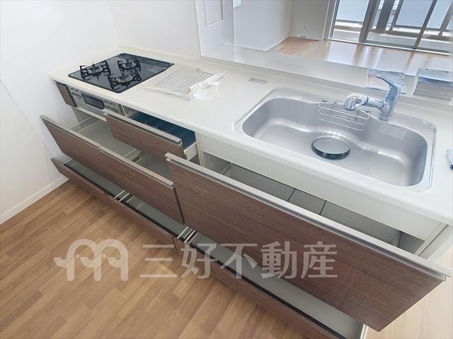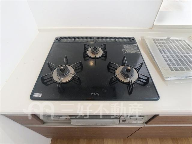 追い焚き、コンロガスコンロ付、コンロ口数三口、シャンプードレッサー、シューズボックス、浄水器、バストイレ別、洗濯機置き場室内有り、バルコニー、フローリング、浴室乾燥