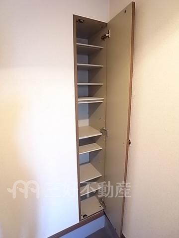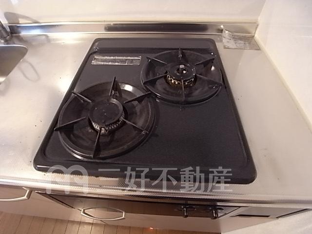 | 設備(共用) | 専用ゴミ置場、排水公共下水接続済、電気、水道公営、ケーブルテレビ、共用灯 | 設備(専有) | インターフォン、プロパンガス、給湯(浴室)、コンロガスコンロ付、コンロ口数二口、シャワー、バストイレ別、洗濯機置き場室内有り、有(その他)、トイレ専用(水洗)、バルコニー、バス専用、フローリング、エアコン、ロフト、ミニキッチン、電話回線、消防設備火災報知器、地上デジタル放送 |