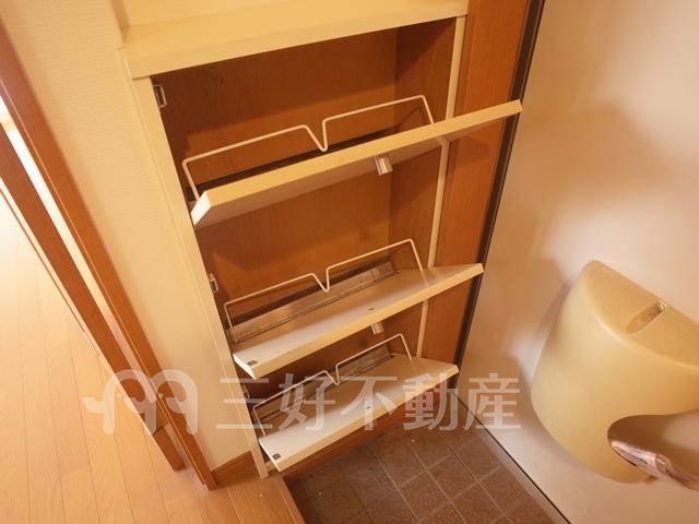 | 設備(共用) | 専用ゴミ置場、駐輪場、排水公共下水接続済、電気、水道公営、ケーブルテレビ | 設備(専有) | BS放送、TVドアホン、TVモニタ付インターフォン、プロパンガス、給湯、コンロガスコンロ付、シャワー、シャワートイレ、シューズボックス、収納、バストイレ別、洗濯機置き場室内有り、有(その他)、出窓、トイレ専用(水洗)、バルコニー、バス専用、フローリング、エアコン、暖房便座、角部屋 |