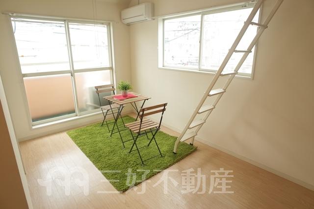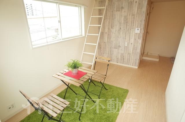 | 設備(共用) | 専用ゴミ置場、排水公共下水接続済、電気、水道公営、共用灯、集合ポスト | 設備(専有) | TVモニタ付インターフォン、プロパンガス、給湯(浴室)、コンロIH、コンロ口数一口、シャワー、シャワートイレ、収納、バストイレ別、洗濯機置き場室内有り、トイレ専用(水洗)、バルコニー、バス専用、フローリング、エアコン、ロフト、電話回線、角部屋、消防設備、地上デジタル放送、火災警報器(報知機) |