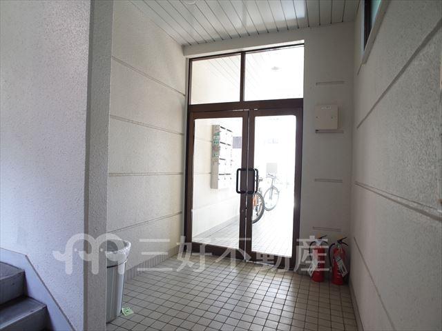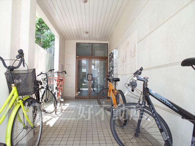 | 設備(共用) | オートロック、外壁タイル、専用ゴミ置場、電気、水道公営、モニタ付オートロック | 設備(専有) | BS放送、CS放送、インターフォン、都市ガス、給湯、クローゼット、ガスコンロ設置可、シャワー、シューズボックス、収納、バストイレ別、洗濯機置き場室外有り、トイレ専用(水洗)、バルコニー、バス専用、フローリング、エアコン、角部屋、メールBOX、CS110° |