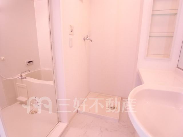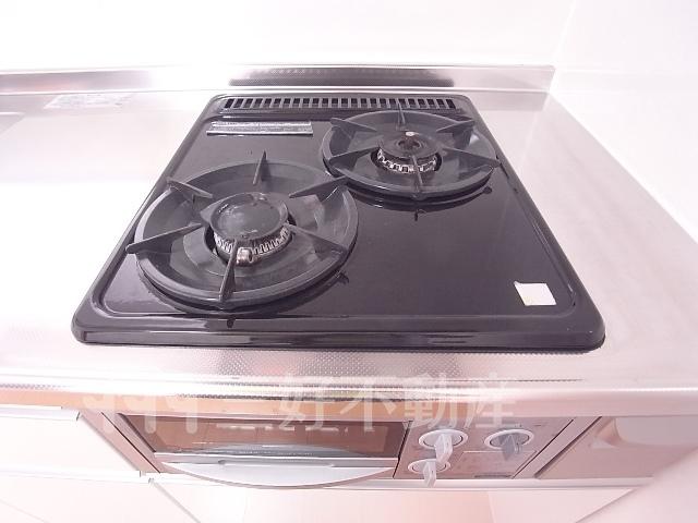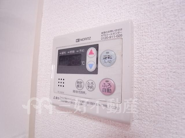 | 設備(共用) | オートロック、駐輪場、排水公共下水接続済、電気 | 設備(専有) | BS放送、TVドアホン、TVモニタ付インターフォン、ウォークインクローゼット、追い焚き、プロパンガス、システムキッチン、給湯、クローゼット、コンロガスコンロ付、コンロ口数二口、シャワー、シャワートイレ、シャンプードレッサー、シューズボックス、収納、バストイレ別、洗濯機置き場室内有り、洗面所、独立洗面台、トイレ専用(水洗)、トイレ数一基、バルコニー、バス専用、フローリング、エアコン、脱衣所、暖房便座、洗面台、カウンターキッチン、消防設備火災報知器、地上デジタル放送、火災警報器(報知機)、メールBOX |