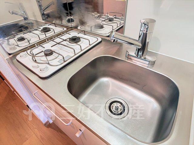 | 設備(共用) | エレベーター、オートロック、外壁タイル、専用ゴミ置場、宅配BOX、排水公共下水接続済、防犯カメラ、電気、水道公営、ケーブルテレビ、モニタ付オートロック | 設備(専有) | 都市ガス、給湯、クローゼット、コンロガスコンロ付、コンロ口数二口、シャワー、シューズボックス、収納、バストイレ別、洗濯機置き場室内有り、洗面所、独立洗面台、トイレ専用(水洗)、バルコニー、バス専用、フローリング、エアコン、家具家電付、脱衣所、洗面台、角部屋 |