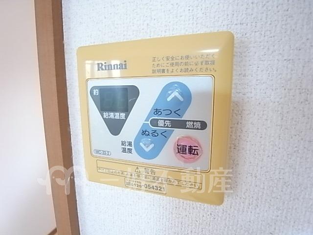 | 設備(共用) | 専用ゴミ置場、駐輪場、排水公共下水接続済、専用階段、電気、水道公営、共用灯 | 設備(専有) | 追い焚き、プロパンガス、給湯、クローゼット、コンロガスコンロ付、コンロ口数二口、シャワー、シャワートイレ、シャンプードレッサー、収納、バストイレ別、洗濯機置き場室内有り、洗面所、独立洗面台、トイレ専用(水洗)、バルコニー、バス専用、フローリング、エアコン、脱衣所 |