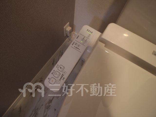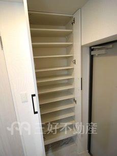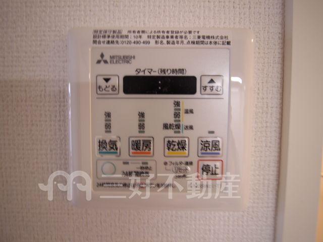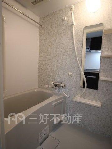 | 設備(共用) | エレベーター、オートロック、専用ゴミ置場、宅配BOX、駐輪場、排水公共下水接続済、防犯カメラ、電気、モニタ付オートロック | 設備(専有) | BS放送、TVドアホン、TVモニタ付インターフォン、プロパンガス、給湯、クローゼット、コンロIH、シャワー、シャワートイレ、シューズボックス、収納、バストイレ別、洗濯機置き場室内有り、洗面所、独立洗面台、トイレ専用(水洗)、バルコニー、バス専用、フローリング、浴室乾燥、エアコン、3点給湯、24時間換気システム、角部屋 |