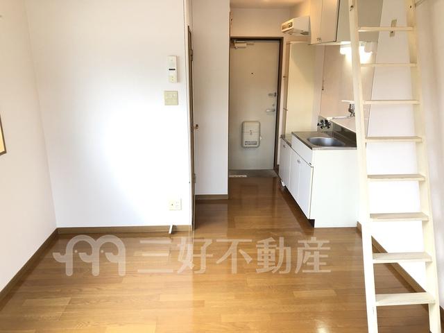 | 設備(共用) | 電気、水道公営、管理人有り | 設備(専有) | BS放送、TVドアホン、TVモニタ付インターフォン、プロパンガス、給湯、クローゼット、ガスコンロ設置可、コンロ口数二口、シャワー、シューズボックス、収納、バストイレ別、洗濯機置き場室内有り、有(その他)、トイレ専用(水洗)、バルコニー、バス専用、フローリング、エアコン、ロフト、角部屋 |