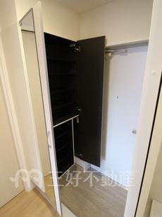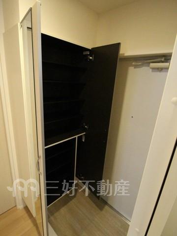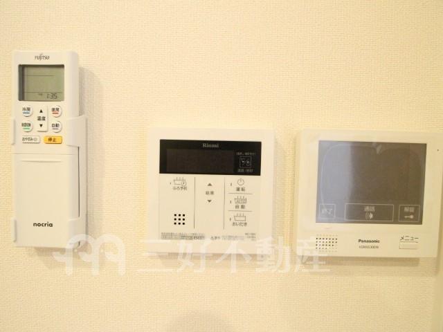 | 設備(共用) | オートロック、専用ゴミ置場、宅配BOX、駐輪場、排水公共下水接続済、防犯カメラ、電気、水道公営、共用灯、集合ポスト | 設備(専有) | BS放送、TVモニタ付インターフォン、ウォークインクローゼット、追い焚き、プロパンガス、システムキッチン、給湯(浴室)、コンロガスコンロ付、コンロ口数二口、シャワー、シャワートイレ、シャンプードレッサー、シューズボックス、照明、バストイレ別、洗濯機置き場室内有り、独立洗面台、トイレ専用(水洗)、バルコニー、複層ガラス、バス専用、浴室乾燥、エアコン、オートバス、クッションフロア、脱衣所、カウンターキッチン、消防設備、地上デジタル放送、火災警報器(報知機)、メールBOX |