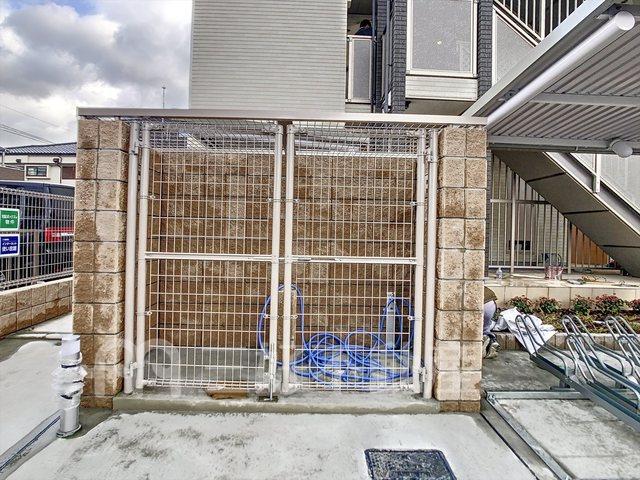 | 設備(共用) | 専用ゴミ置場、宅配BOX、排水公共下水接続済、防犯カメラ、電気、水道公営 | 設備(専有) | BS放送、CS放送、TVドアホン、TVモニタ付インターフォン、追い焚き、プロパンガス、システムキッチン、給湯、クローゼット、コンロガスコンロ付、コンロ口数二口、シャワー、シャワートイレ、シャンプードレッサー、シューズボックス、収納、浄水器、バストイレ別、洗濯機置き場室内有り、洗面所、独立洗面台、トイレ専用(水洗)、バルコニー、バス専用、フローリング、浴室乾燥、エアコン、オートバス、セキュリティーキー、ダブルロック、脱衣所、暖房便座、24時間換気システム、角部屋、カウンターキッチン |