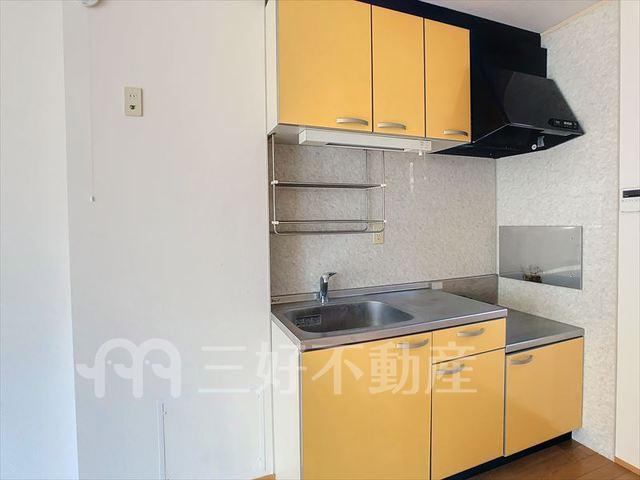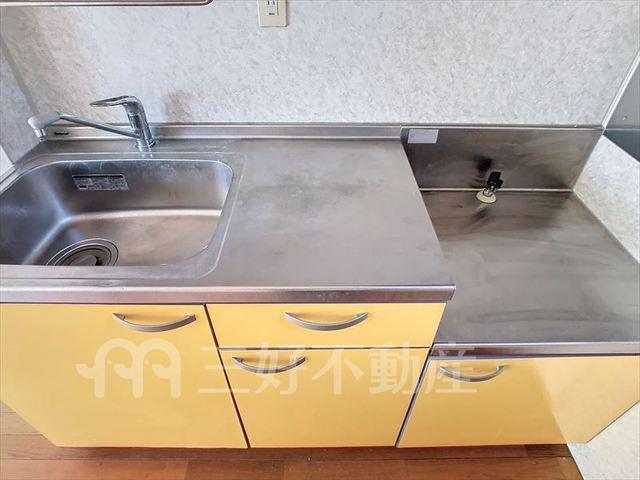| 設備(共用) | 専用ゴミ置場、駐輪場、排水公共下水接続済、電気、水道公営、共用灯 | 設備(専有) | プロパンガス、給湯(浴室)、シャワー、収納、バストイレ別、洗濯機置き場室内有り、トイレ専用(水洗)、バルコニー、バス専用、脱衣所、カウンターキッチン、消防設備、地上デジタル放送、火災警報器(報知機) |