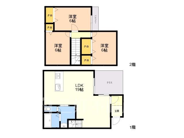 敷地内駐車場2台付! オール電化の3LDK。